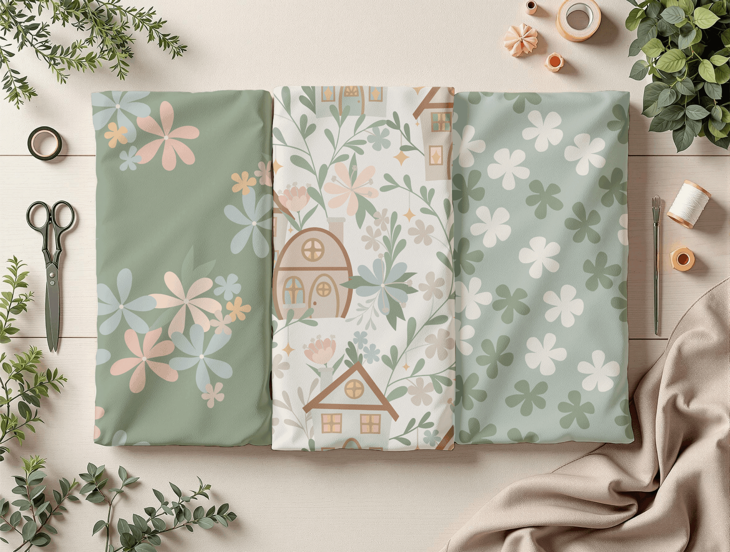 Stap een sprookjesachtige tuin in met prachtige pastelkleuren. Elk patroon vertelt een eigen verhaal, van een wilde bloemenwirwar tot luchtige kleine bloesem.